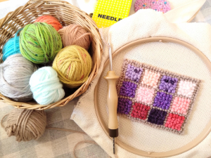 パンチニードルは専用ニードルで毛糸を刺していく新しい手芸のかたちです。ミニラグ・コースター・アクセサリーなどの雑貨を作れます。お部屋のアクセント、友達へのプレゼントなどアイデア次第です。道具はレンタルできますので「手ぶら」でご参加ください。